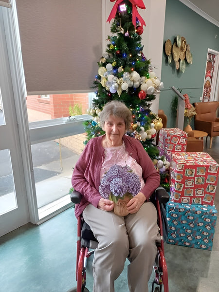 I gave the vase of Hydrangeas to my 102yr Mother for Christmas, she loves it as do her visitors who comment on how "lifelike" it is. All happy.